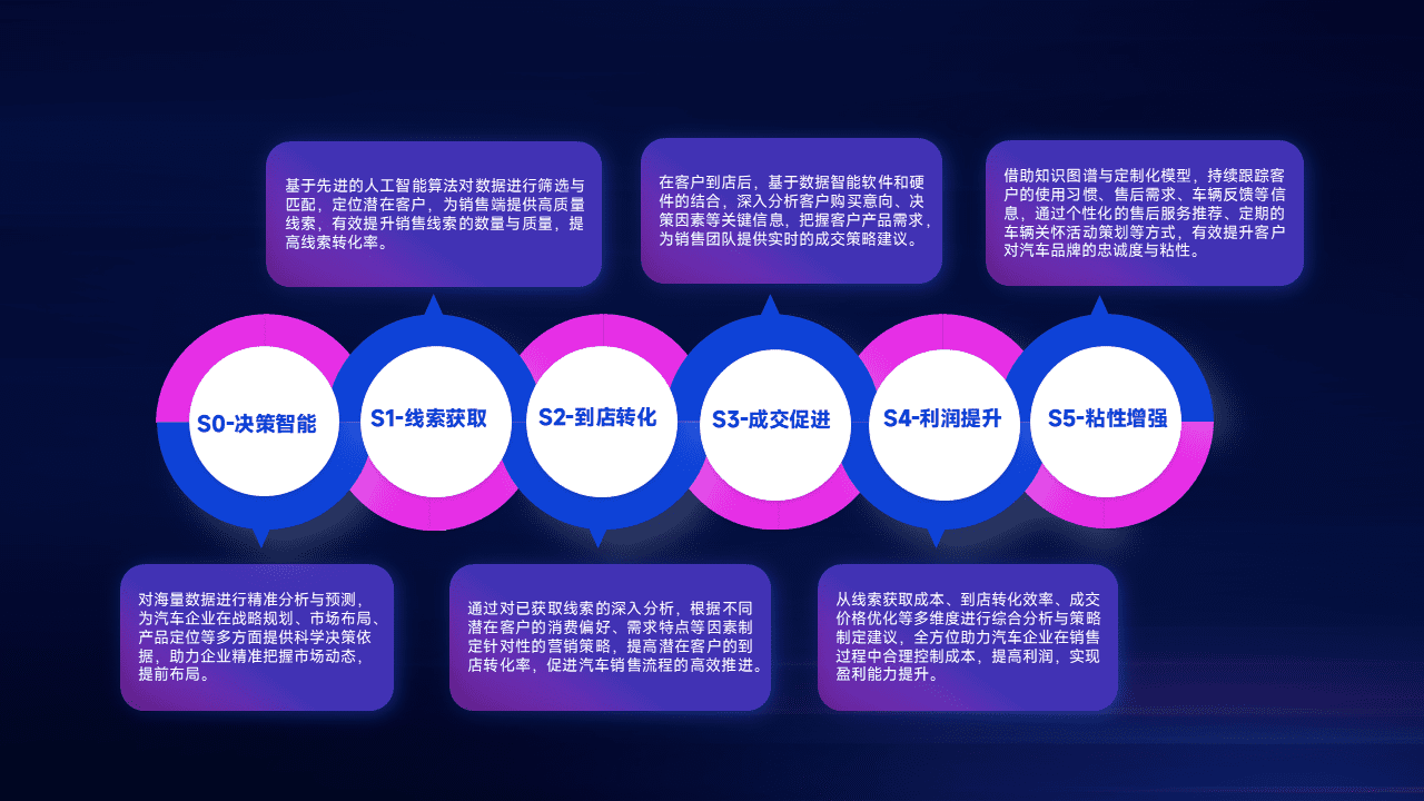 通过拓宽潜在客户来源、、、优化线索分配并提高到店转化率,,,以增强销售效率。。同时,,利用线索数据不断优化分析模型,,,有效提升转化率,,,,扩大营销影响力。。
